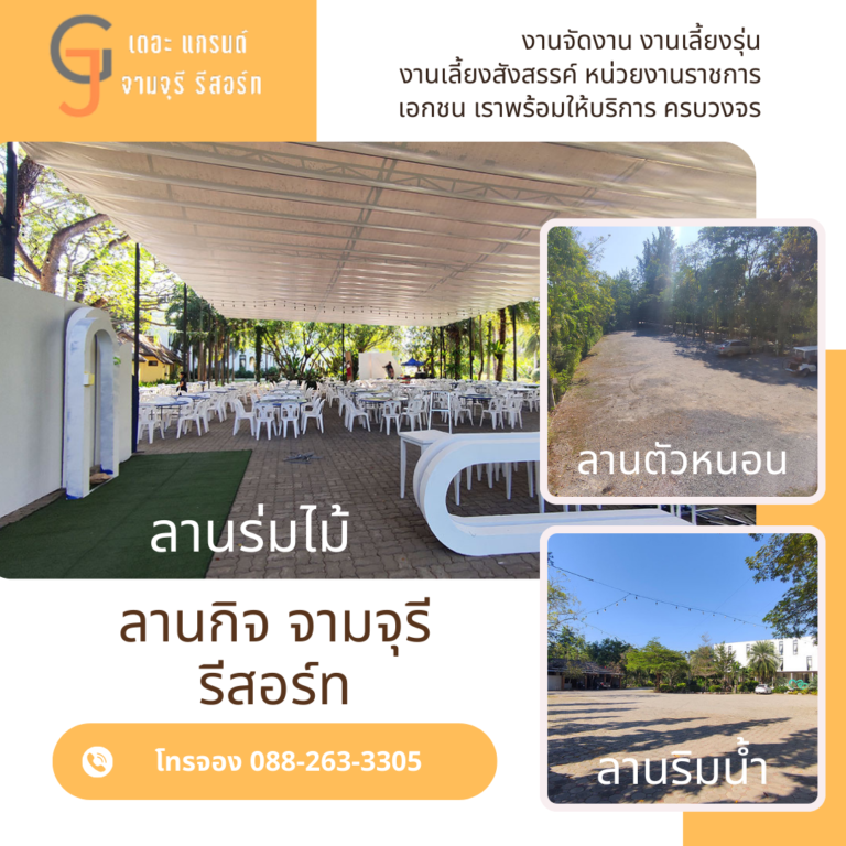 ลานริมน้ำ เดอะแกรนด์จามจุรีรีสอร์ท ลำพูน ลานจัดกิจกรรมกลางแจ้ง