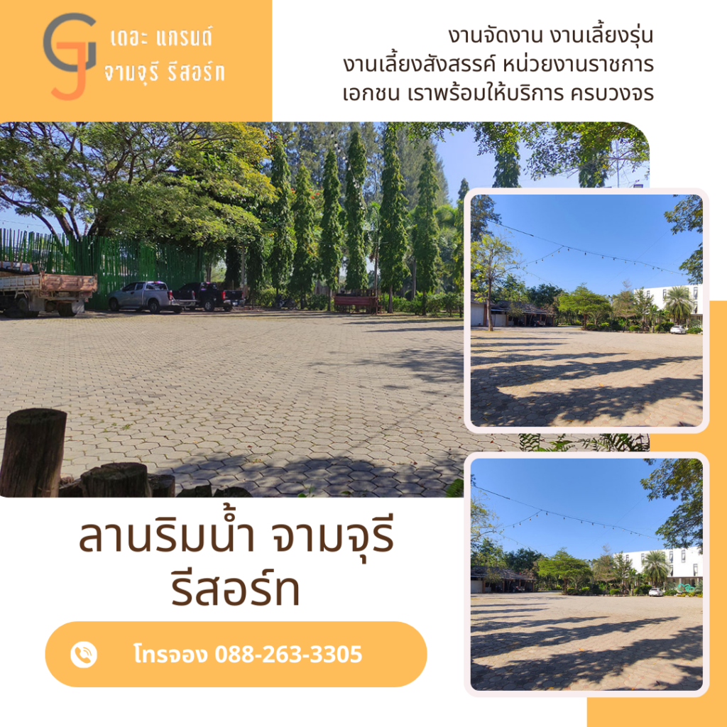 ลานริมน้ำเดอะ แกรนด์จามจุรี รีสอร์ท ลำพูน เป็นลานจัดกิจกรรมกลางแจ้งที่เหมาะสำหรับงานแต่งงาน งานเลี้ยงฉลองต่างๆ บรรยากาศธรรมชาติ ร่มรื่น สวยงาม มองเห็นวิวทะเลสาบที่สวยงาม เหมาะสำหรับผู้ที่ต้องการจัดงานในบรรยากาศที่โรแมนติก