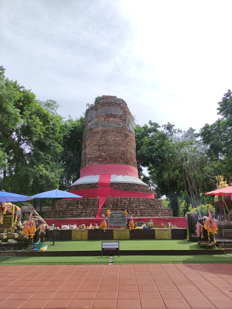ตามประวัติกล่าวว่า เป็นช้างที่มีฤทธิเดชมาก เมื่อช้างเชือกนี้หันไปทางศัตรู จะทำให้ศัตรูอ่อนกำลังลงทันที เมื่อช้างเชือกนี้ล้มลงจึงมีการสร้างสถูปขึ้นเพื่อบรรจุซากของช้าง โดยให้ซากของช้างหันหน้าขึ้นไปบนอากาศ
